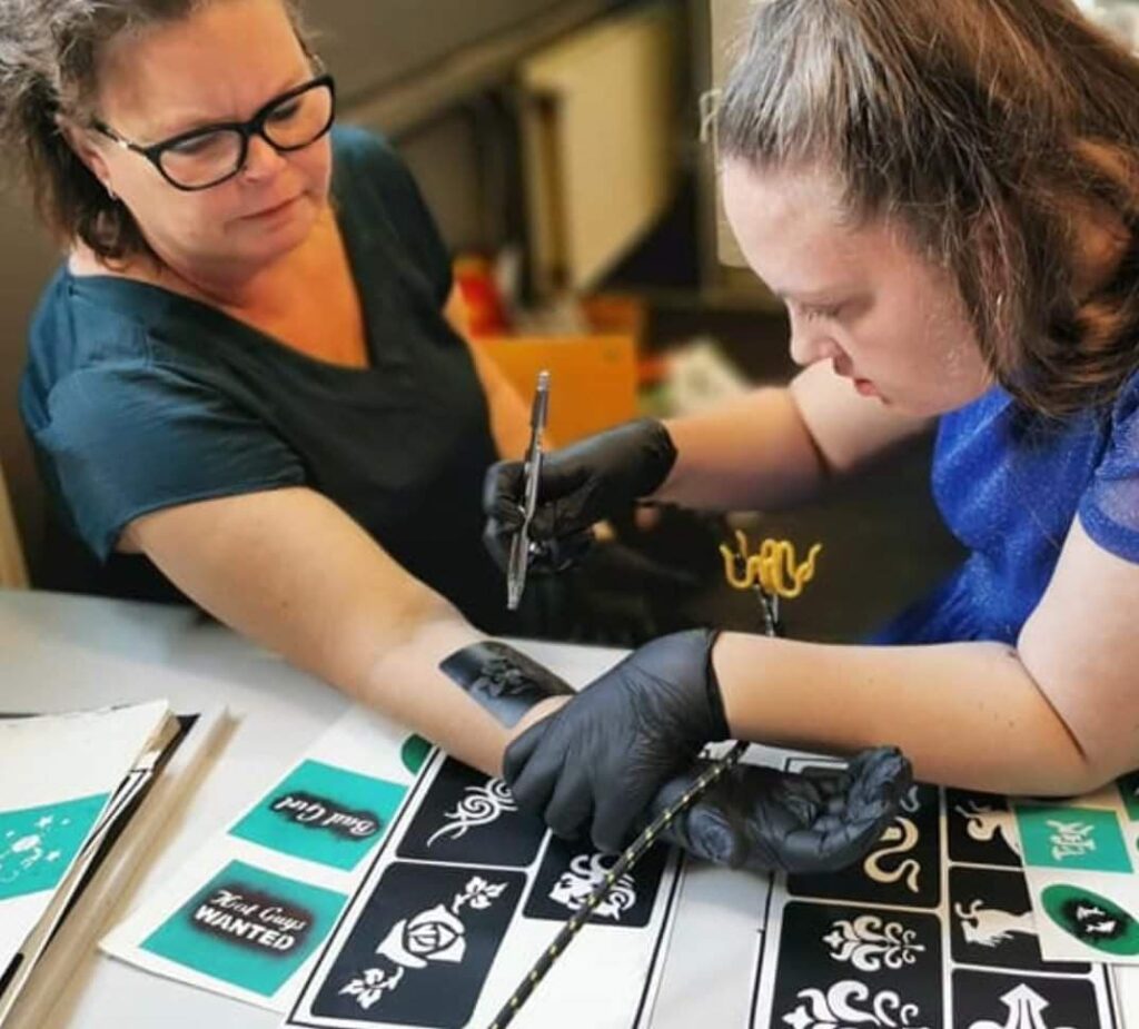 Klovnene er på pletten og klar med at give en super sej airbrush tattovering som et fedt minde fra dagen